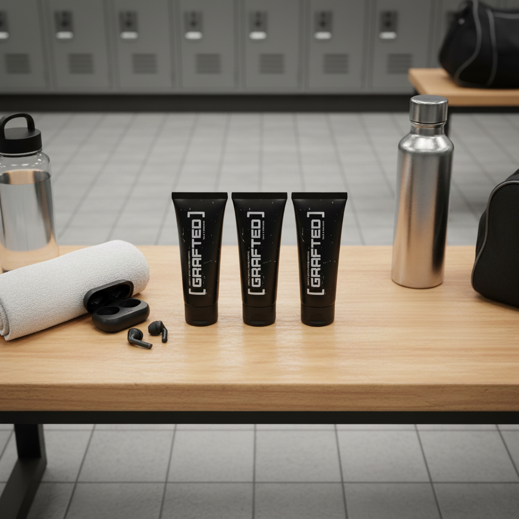 Your skin takes a beating under the bar too. Sweat, chalk, and showers that strip the life out of it. GRAFTED keeps your skin strong, hydrated and looking fresh post-workout.
